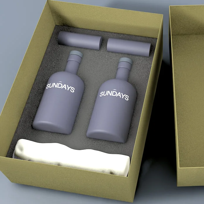 Two shot glasses, two bottles and one t-shirt. Built using Cinema 4D.